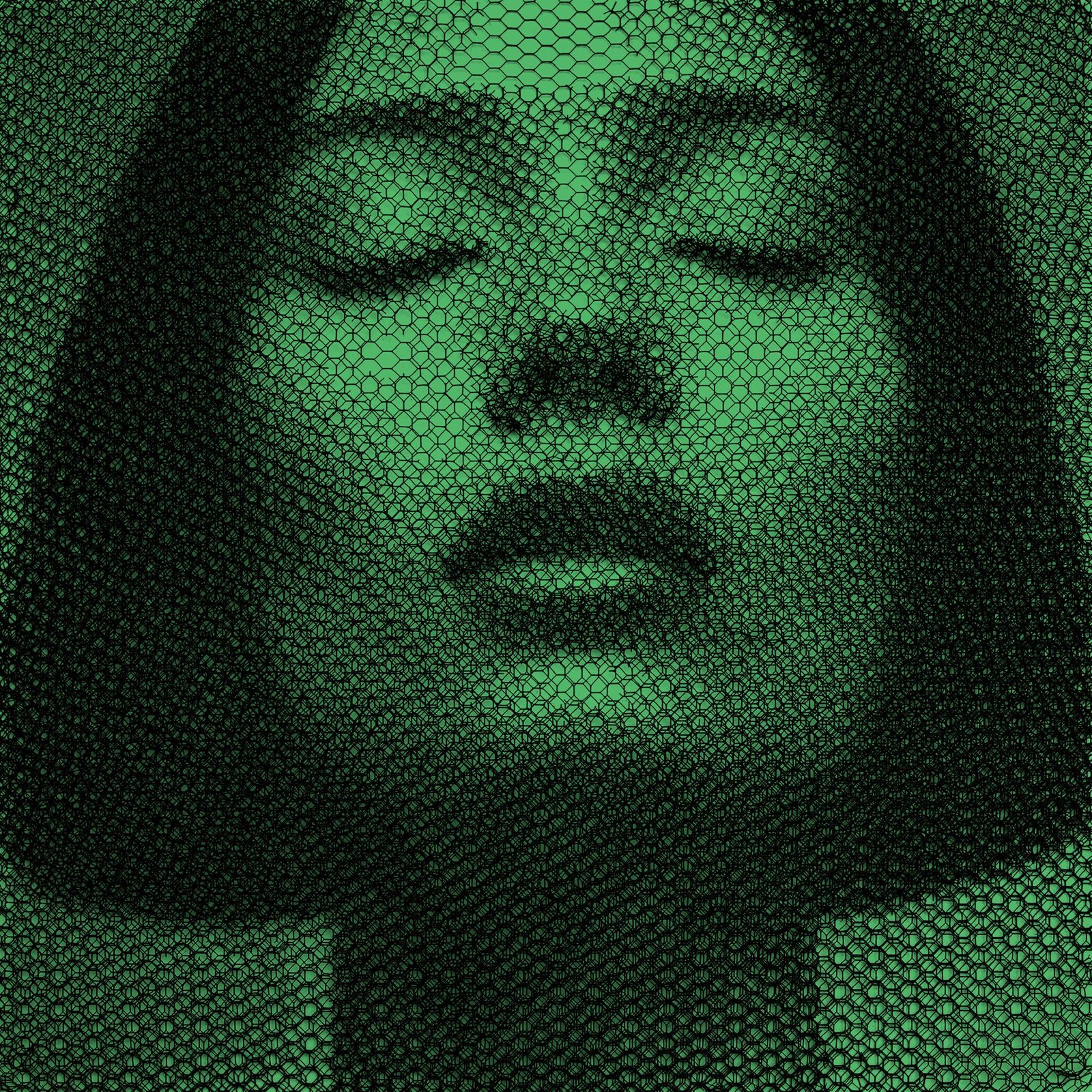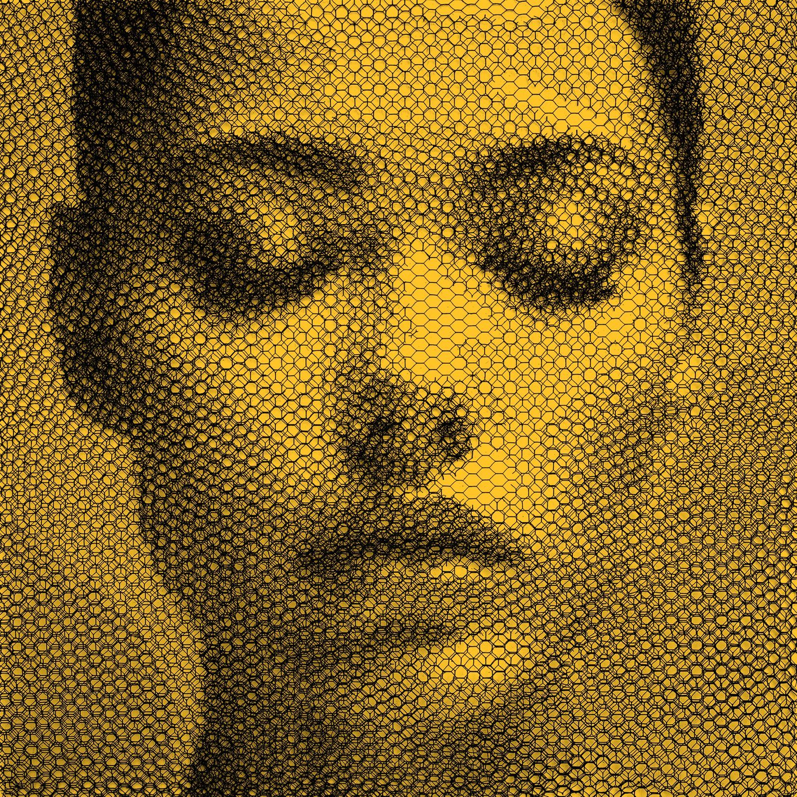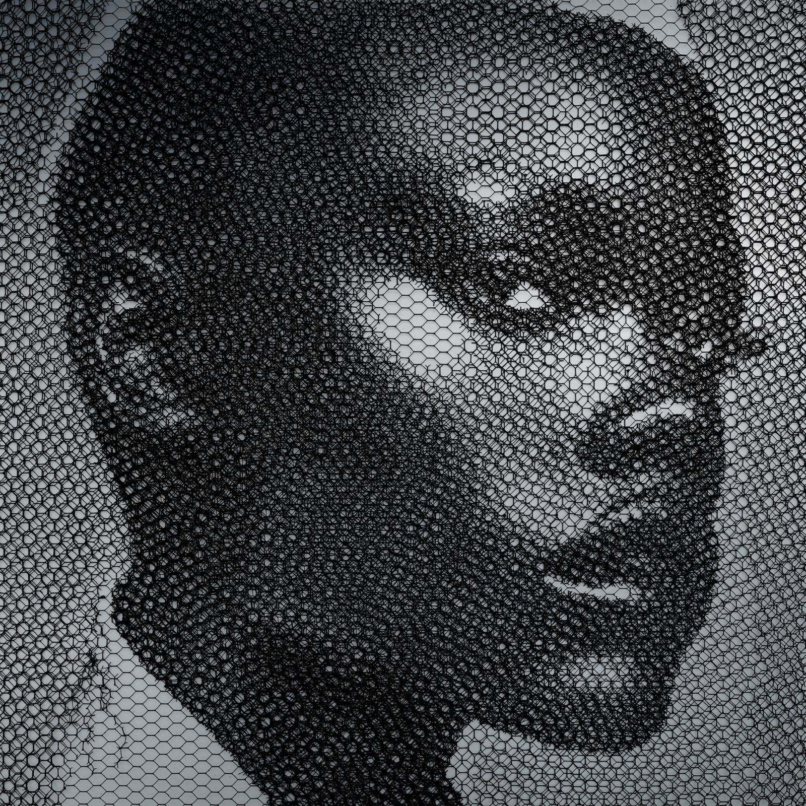 Hand-cut metal wire mesh layered over a background