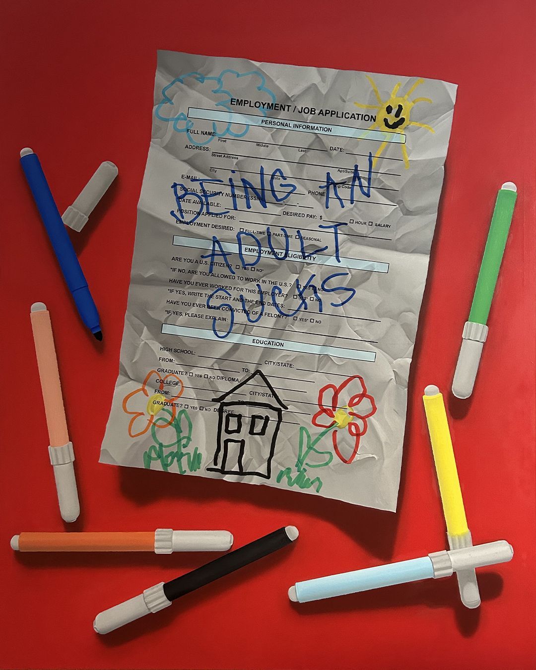 A trent’anni, il suo lavoro si concentra proprio su quei territori di maggiore vulnerabilità, i luoghi in cui spesso ci si sente soli o inadeguati. Rendendoli visibili e condivisibili, l’artista li normalizza, trasformando il disagio in linguaggio comune e innescando possibilità di dialogo e riflessione collettiva.